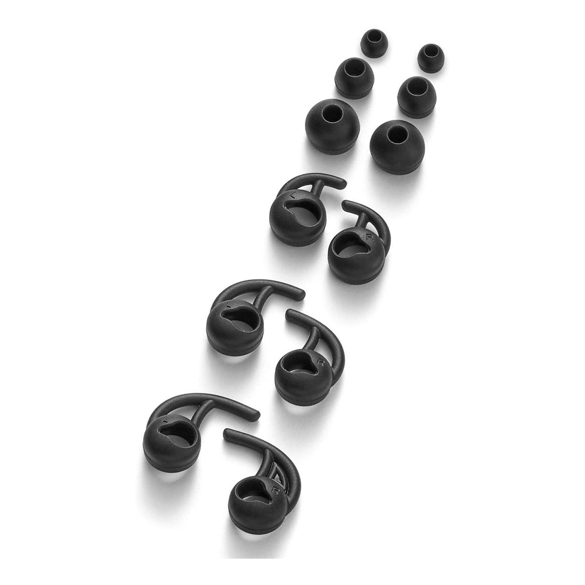 – Tres tamaños de almohadillas intercambiables y estabilizadores para el mejor ajuste