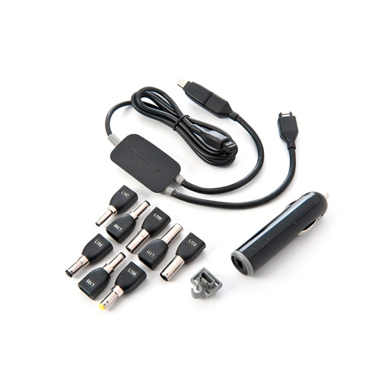 – Cargador de auto adaptable para varios dispositivos móviles, notebooks USB & MINI USB.