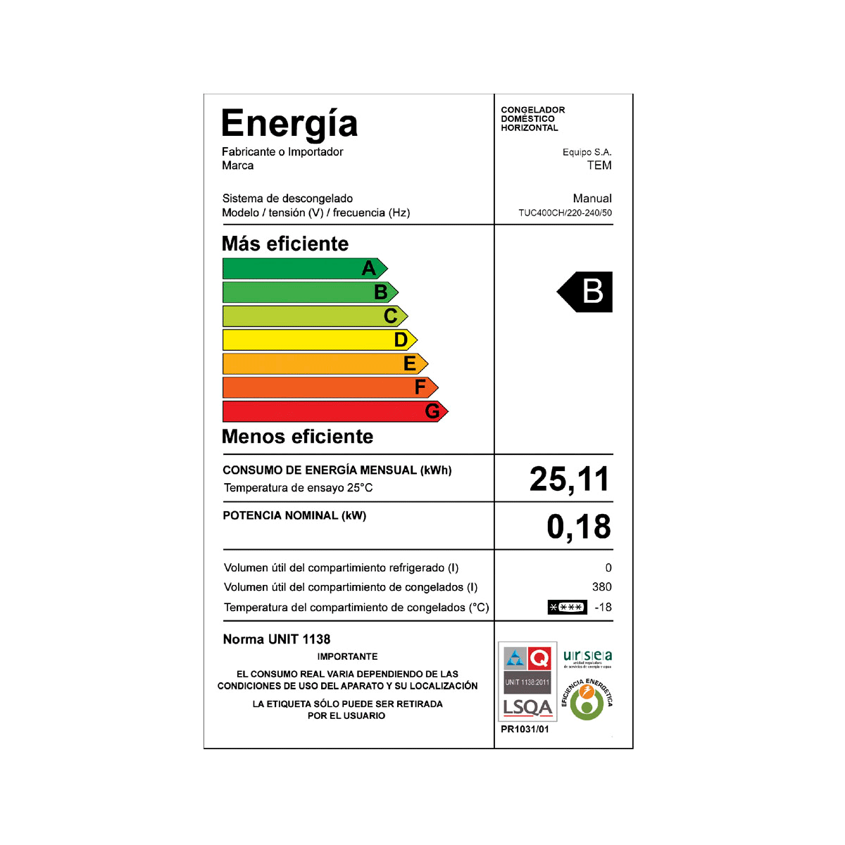– CAPACIDAD:412 Lts