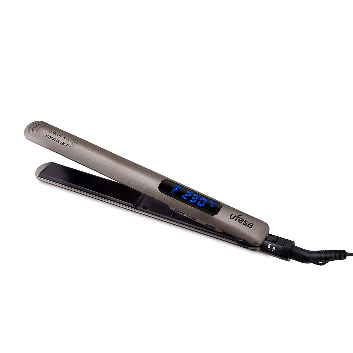 – Control digital de la temperatura en gran pantalla LCD de 150 a 230 °C.