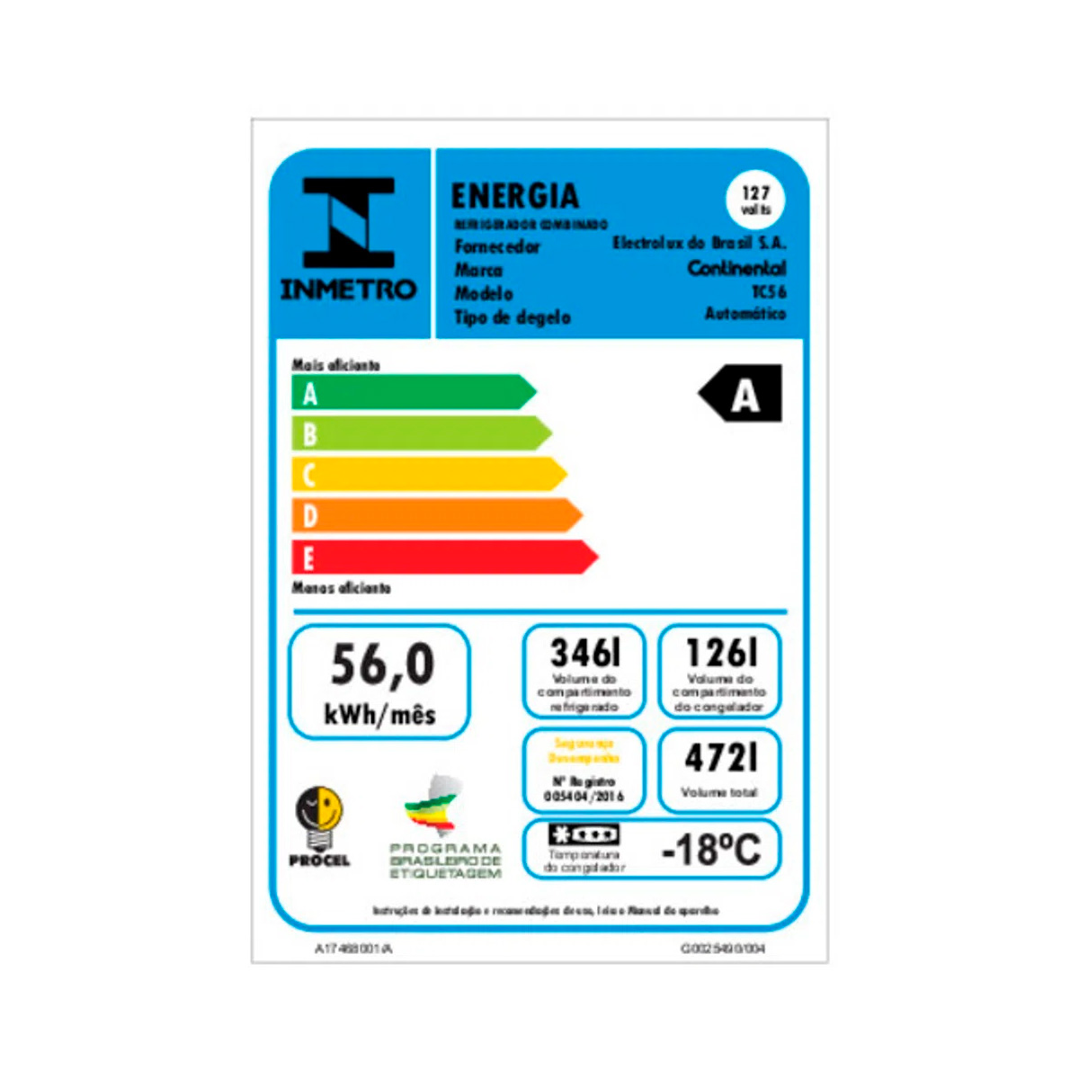 – Capacidad neta Congelador (L): 126