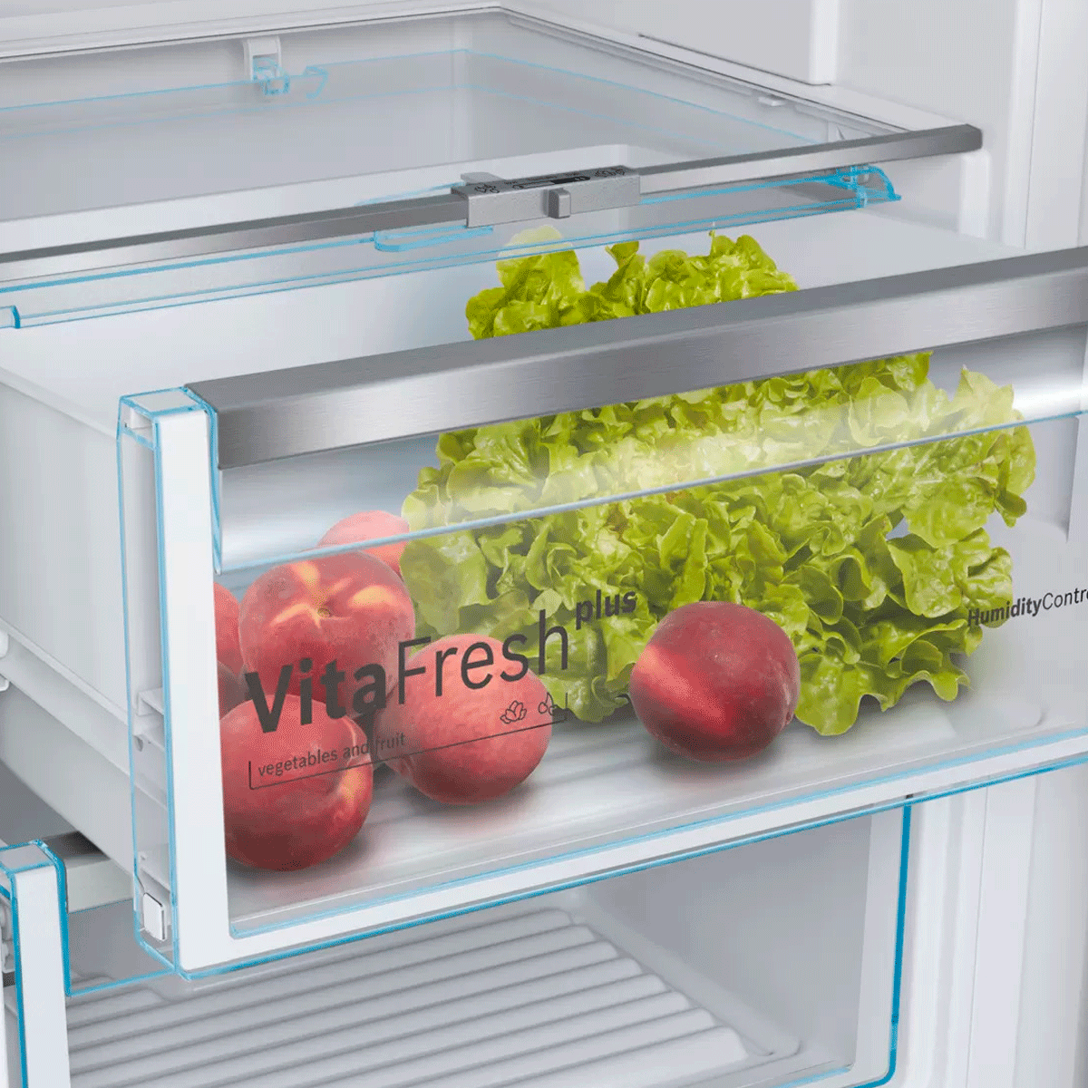 – VitaFresh Plus con guías telescópicas: conserva los alimentos frescos hasta el doble de tiempo