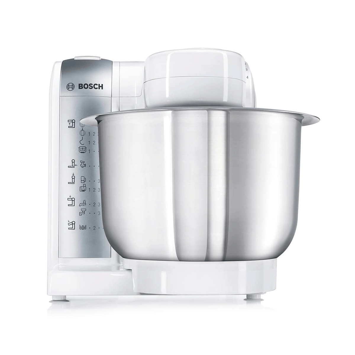 – Bol de mezclas de acero inoxidable para 0,75 kg de harina más ingredientes (máx. capacidad de masa 2 kg). Incluye una tapa con hueco para añadir ingredientes.