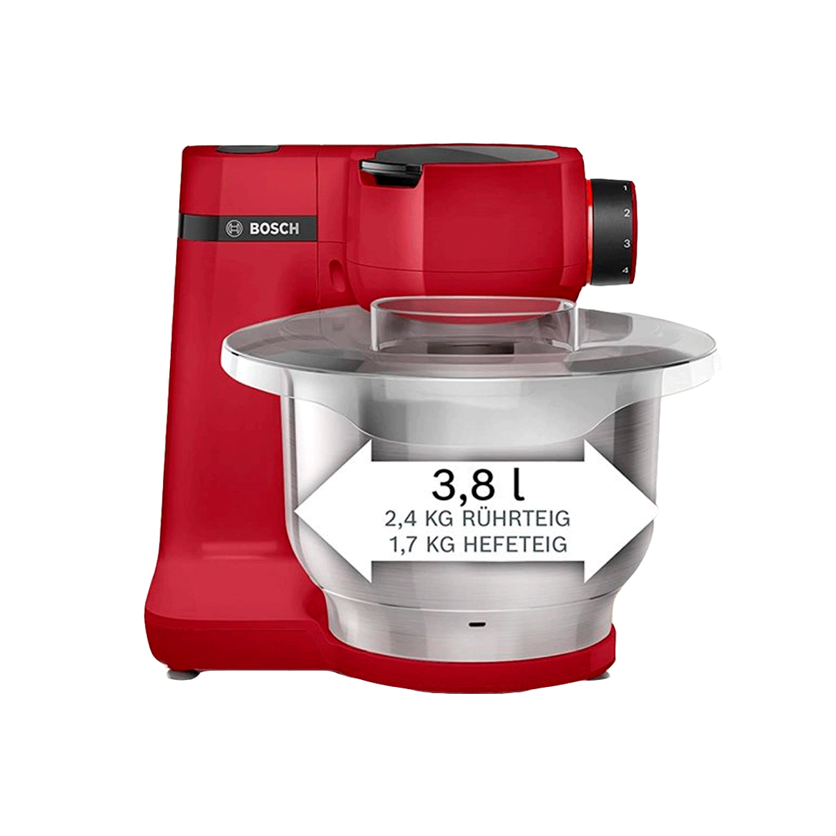 – Bowl especial de 3,8 litros de capacidad de acero inoxidable con un diseño especial para unos óptimos resultados a la hora de trabajar con masas.