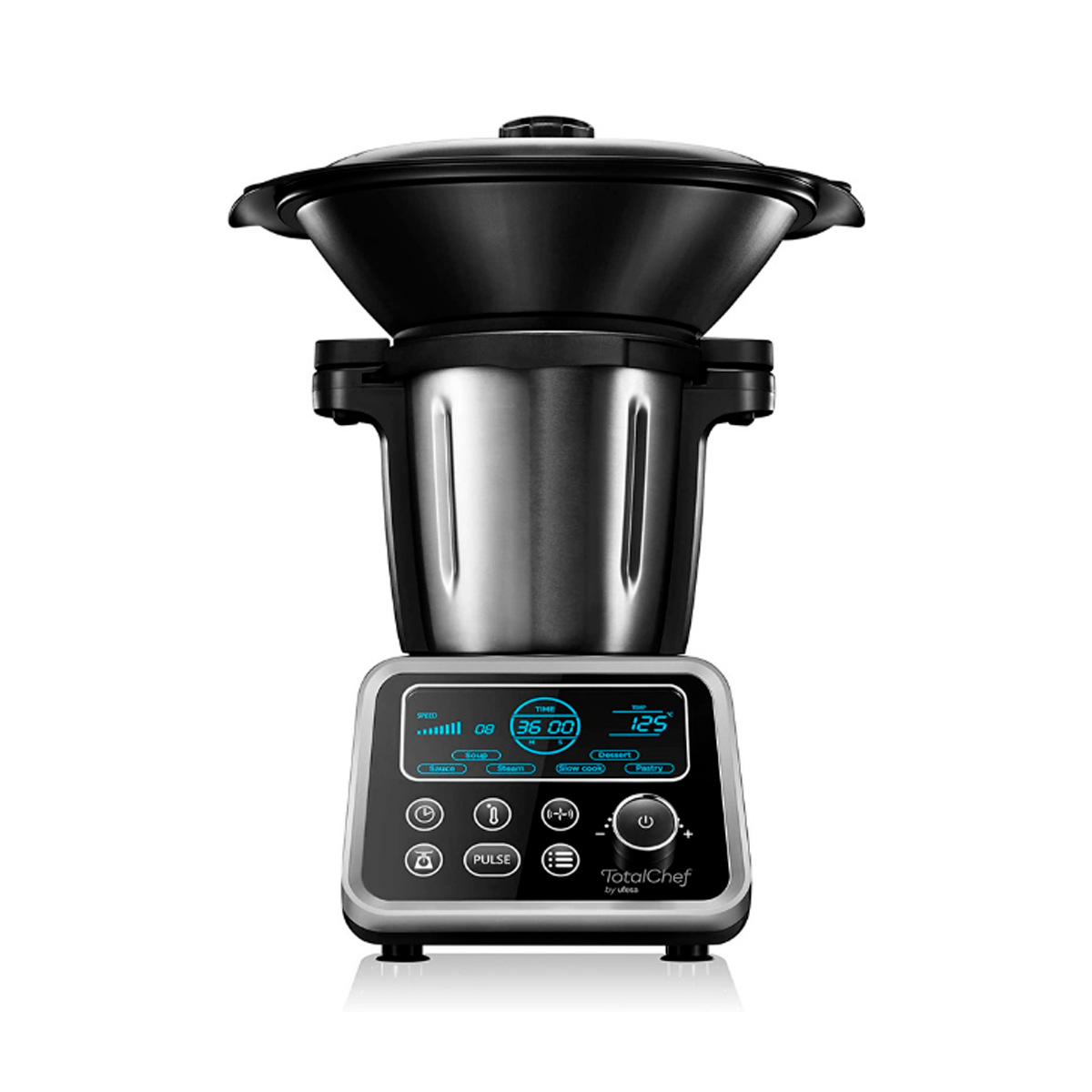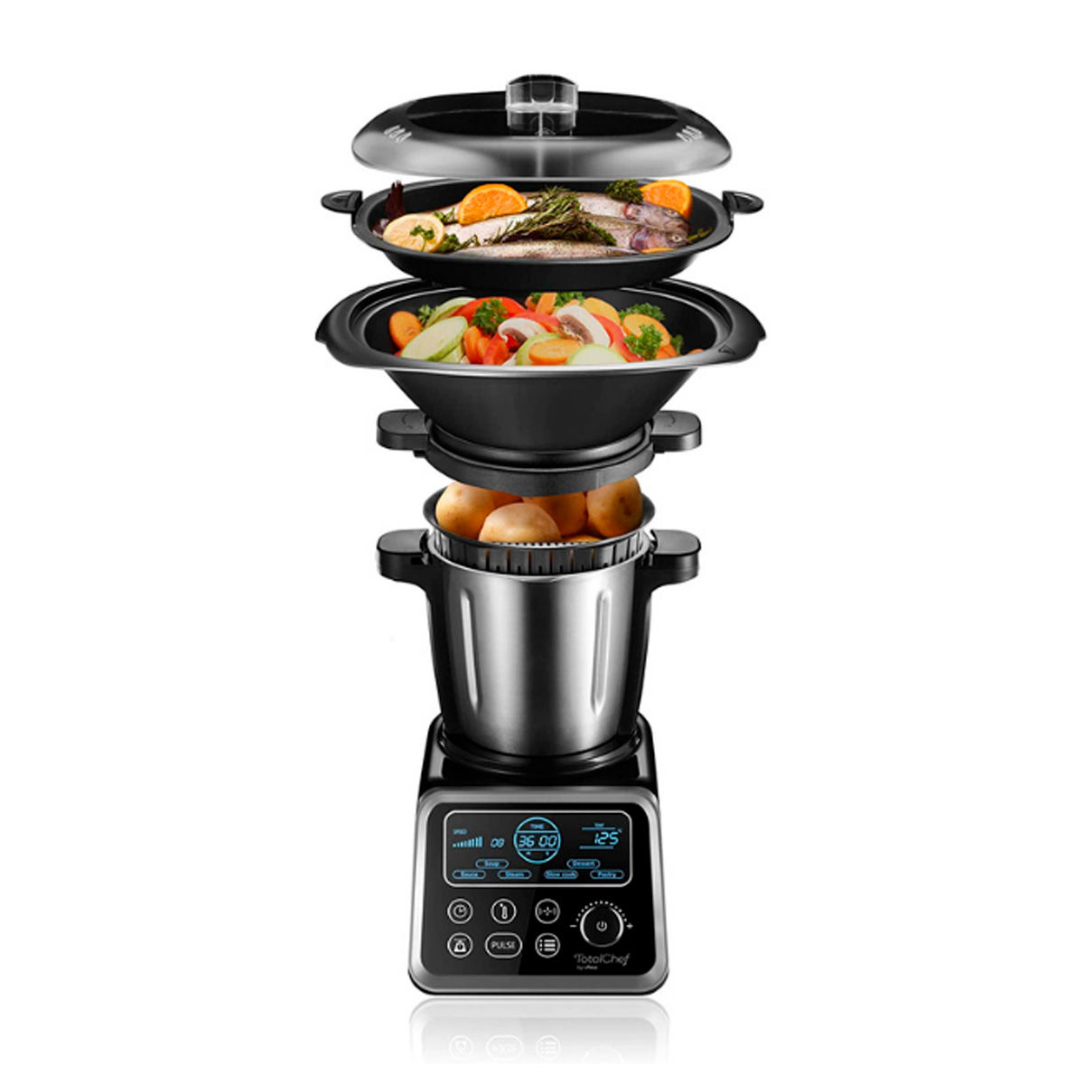 – 20 funciones: pica, mezcla, Cocina con precisión grado a grado, cocina baño maria, tritura, remueve, sofríe, cocina al vapor, muele, escalfa, pulveriza, confita, amasa, recalienta, cocina a baja temperatura, bate, hierve, mantiene caliente, monta y emulsiona.