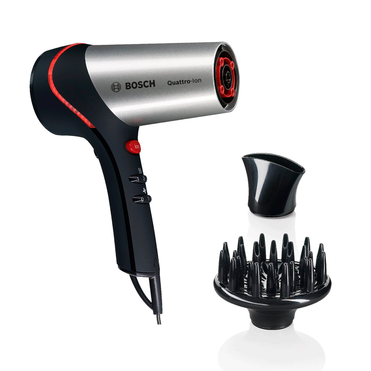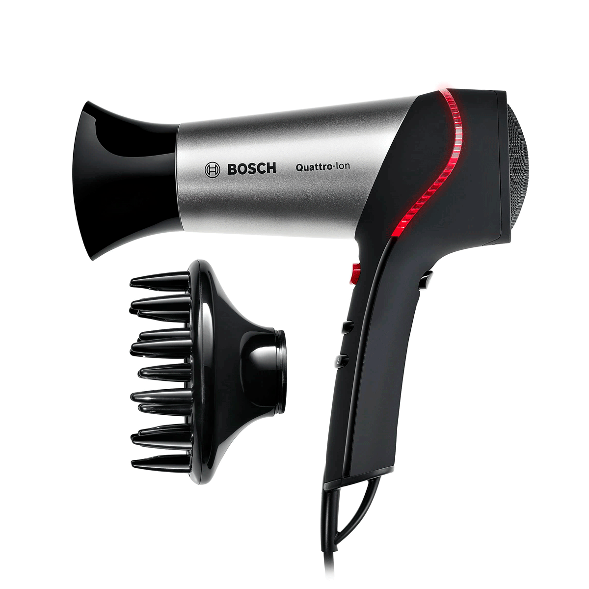 – Innovador LED que se ilumina en rojo cuando la función Quattro-Ion es activada.