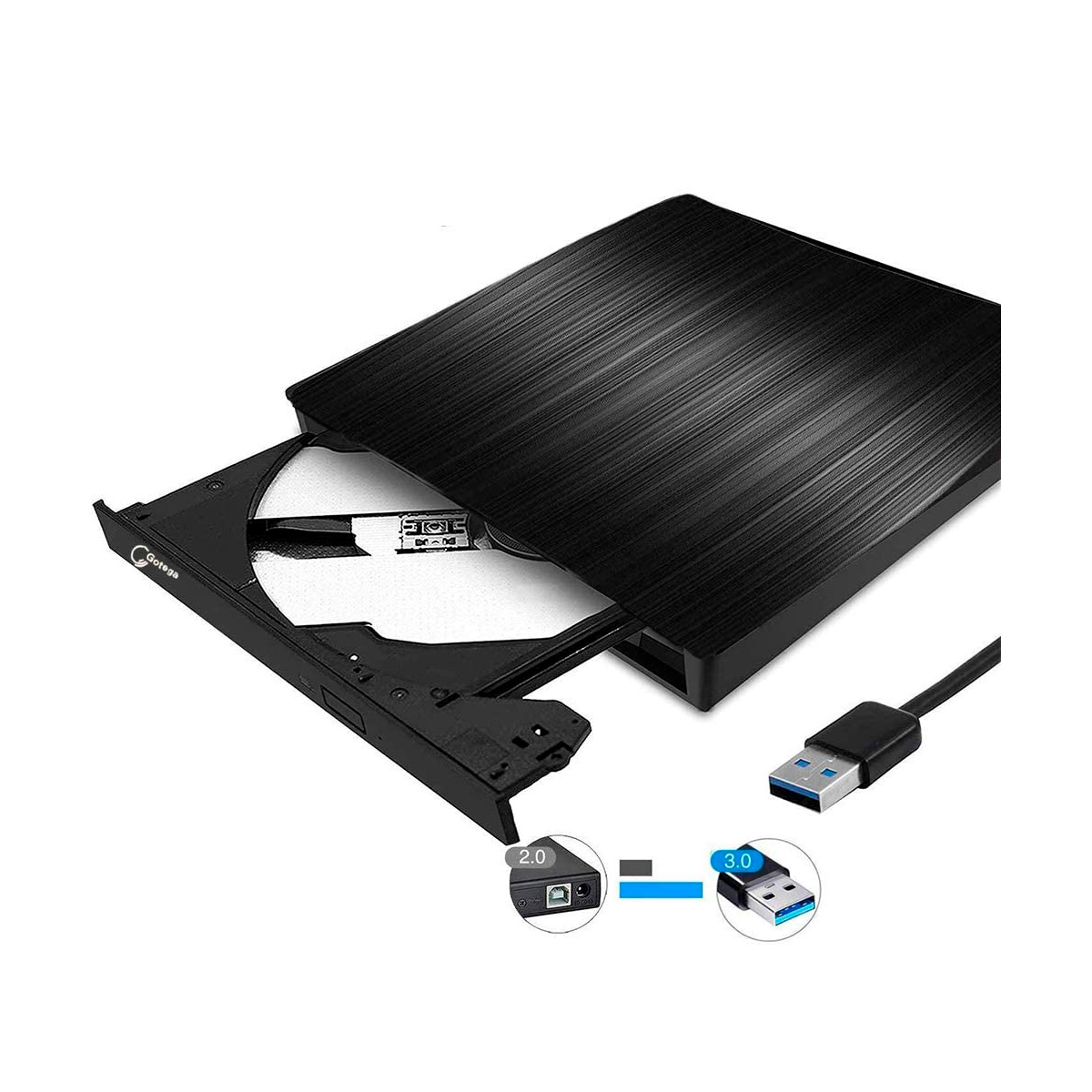 – Tecnología avanzada USB3.0: USB 3.0 proporciona una velocidad de transferencia de datos rápida y un rendimiento estable para grabar CD/música/videos/instalar software o crear discos de copia de seguridad de CD/DVD (también compatible con USB2.0)